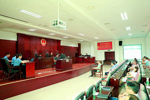 图为曾凡军单位受贿、受贿案一审庭审现场。(临武县纪委监委供图)